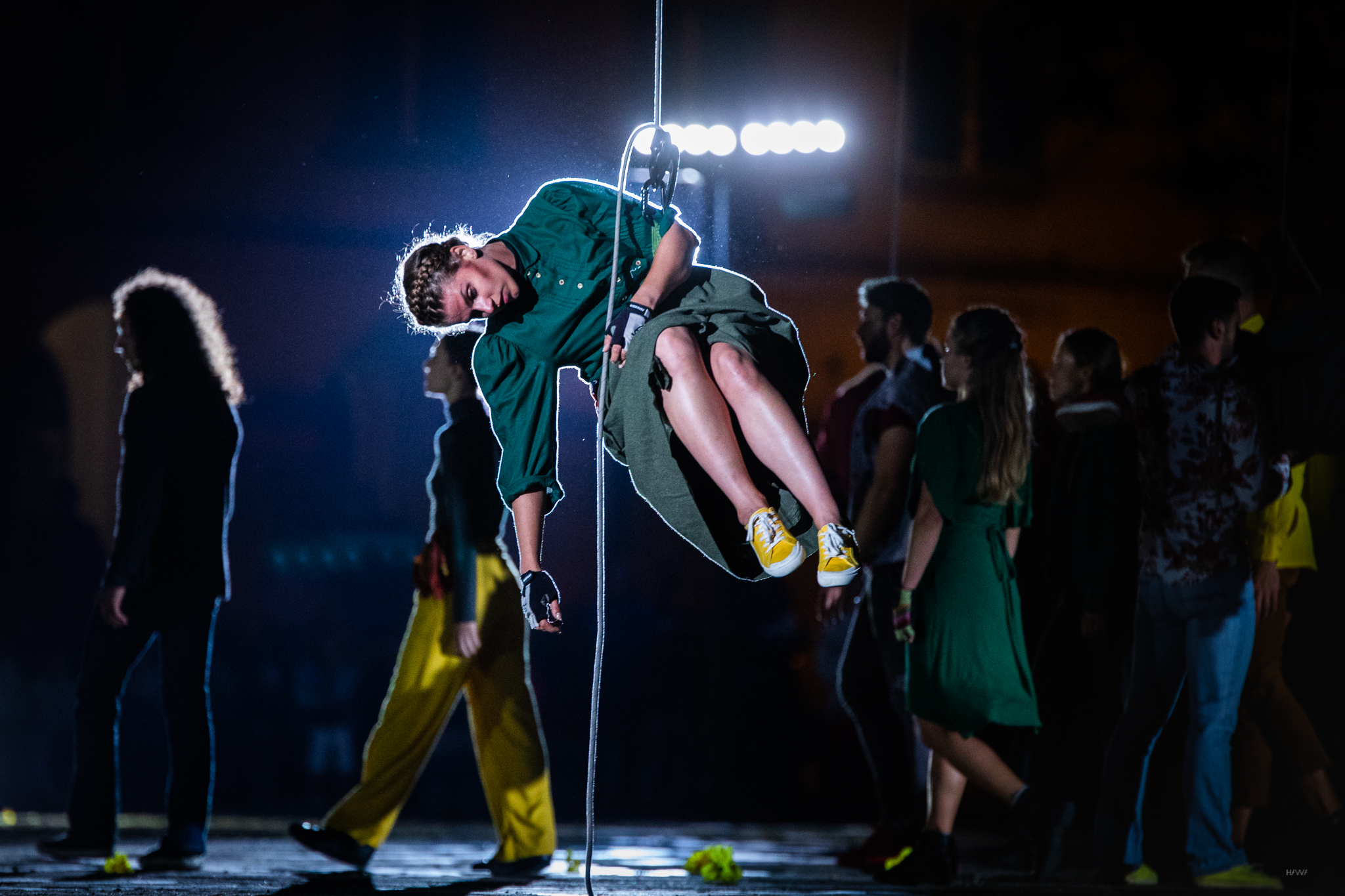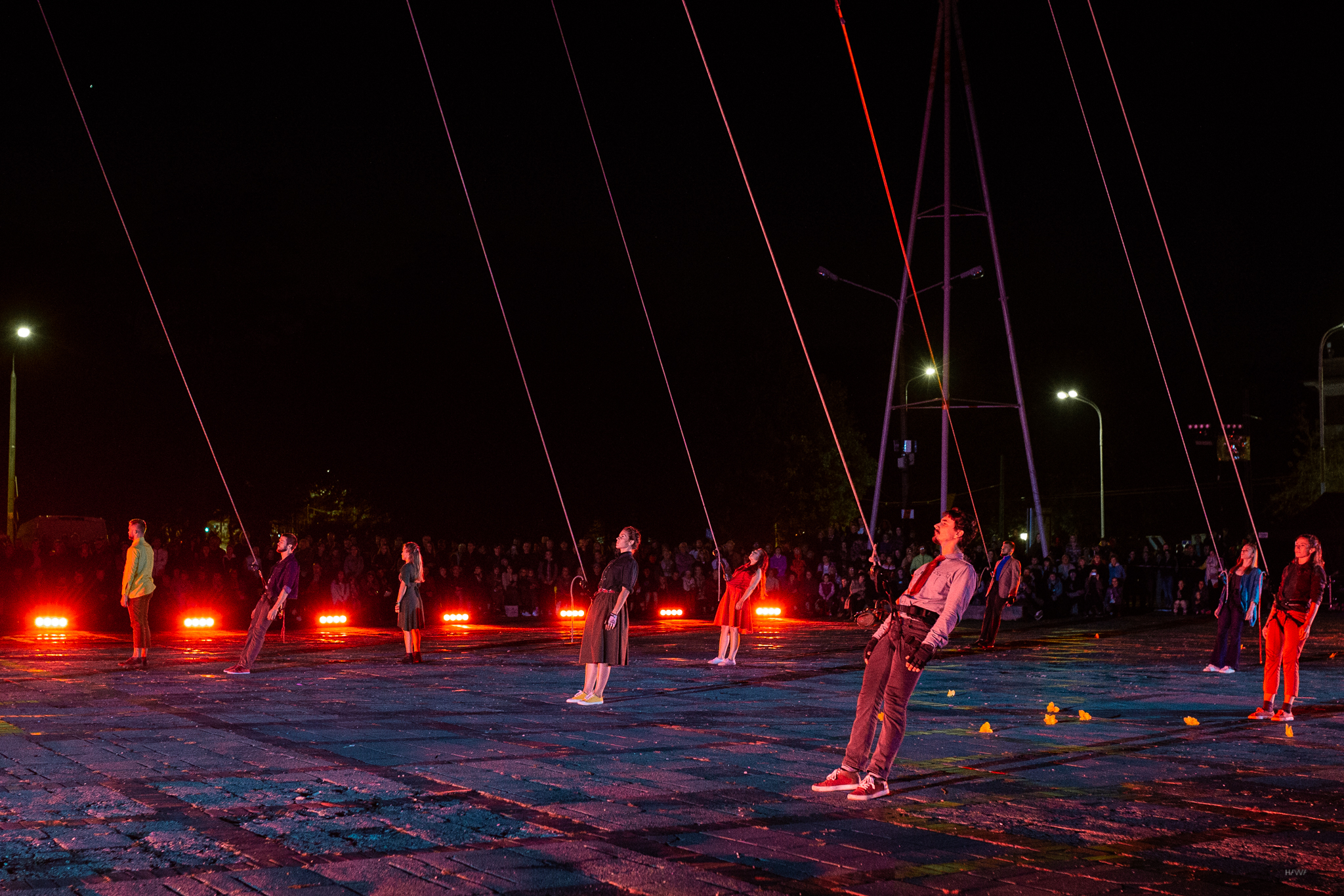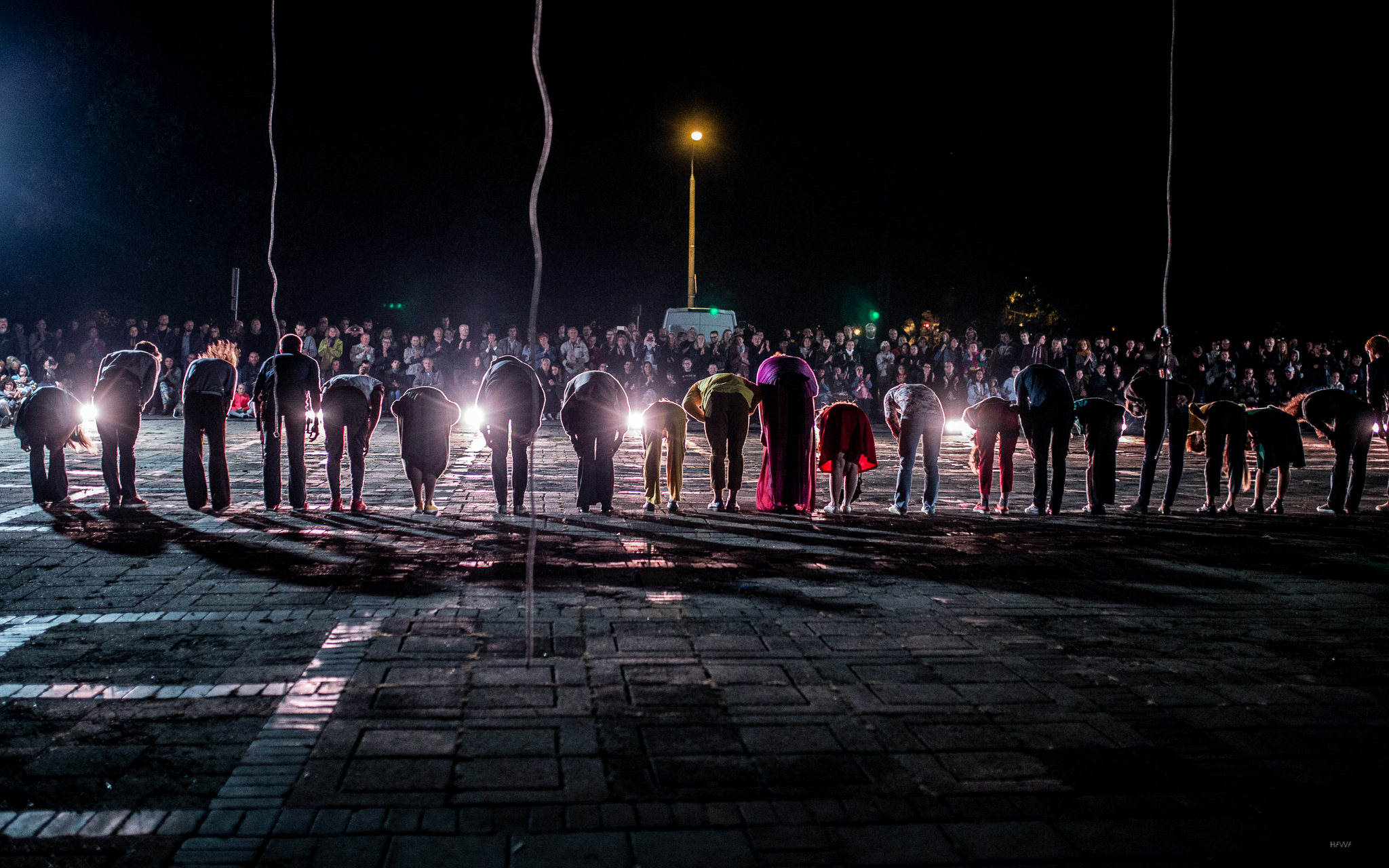 To nasze kolejne spotkanie z LineAct. Tym razem grupa nawiązała dialog z przestrzenią Starego Rynku w Łodzi. Punktem wyjścia dla spektaklu Lepiej* był namysł nad mechanizmem pojawiania się w społeczeństwie kozła ofiarnego i szumu informacyjnego. Spektakl, inspirowany literaturą Henryka Grynberga oraz Ryszarda Kapuścińskiego, rozegrał się na płycie Starego Rynku i nad nią, wpisując się w instalację artystyczną nad rynkiem. Całości towarzyszyła muzyka na żywo – koncert zespołu Ciśnienie.