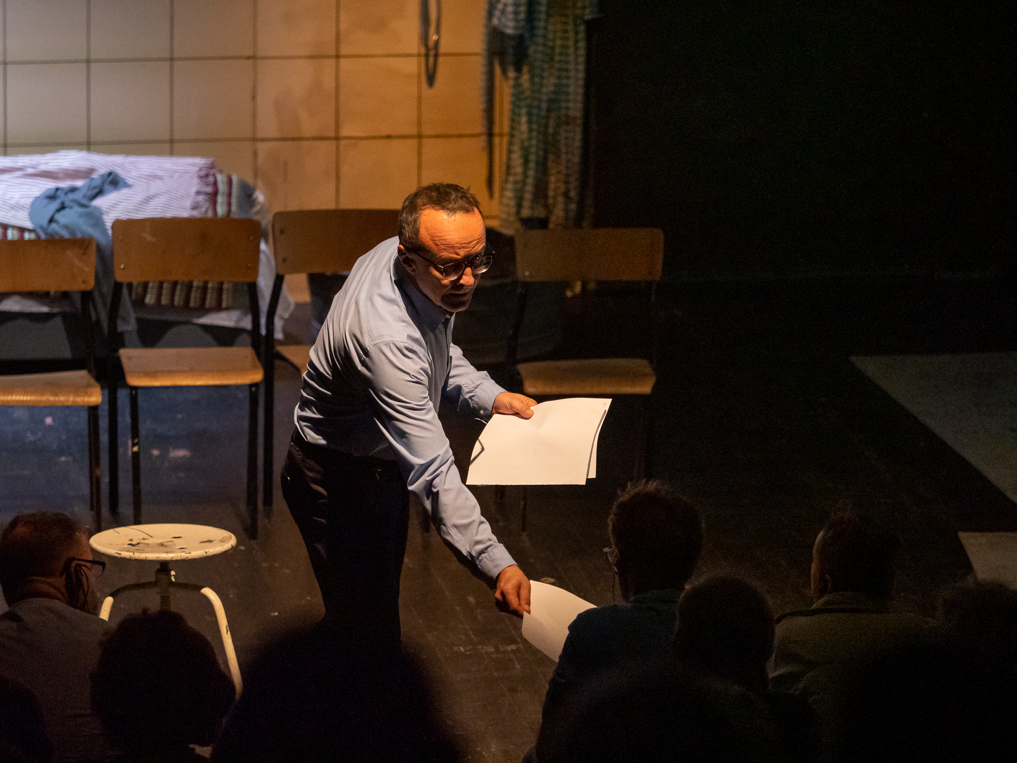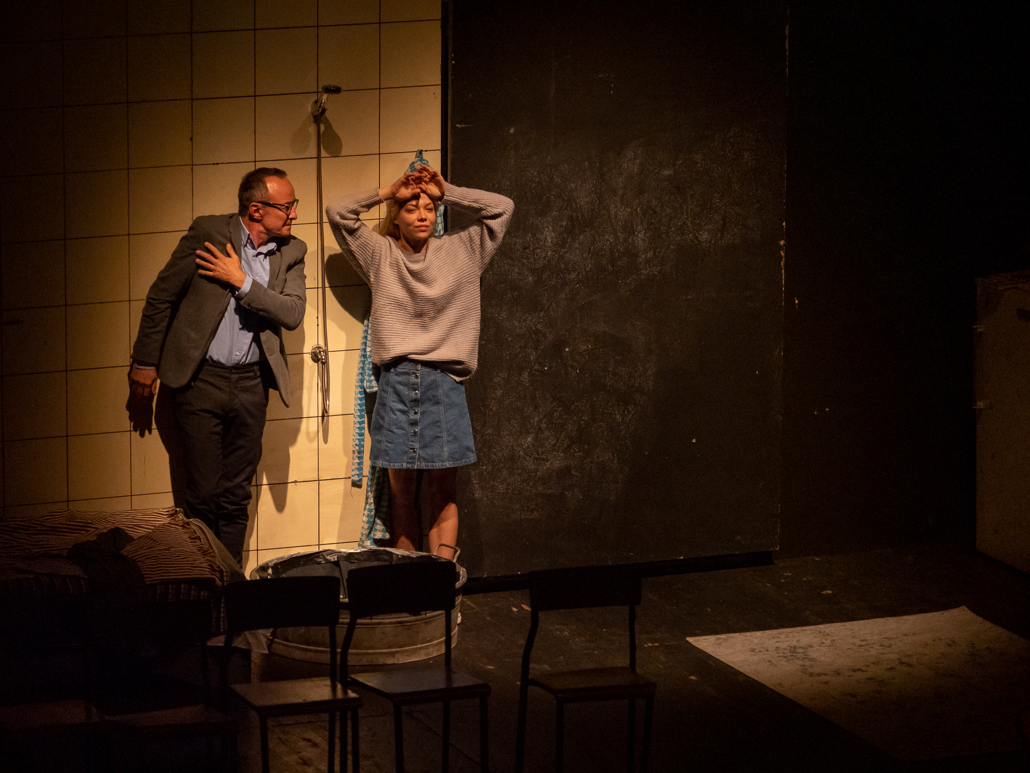 Przeniesiona na scenę powieść Coetzee'go stawia pytania o winę, o wstyd, o samotność, o naturę nienawiści i przemocy, o mężczyzn, o kobiety. Czy kolejne spotkania ofiar i oprawców doprowadzą do pojednania? Czy też stanowić będą kolejny rozdział niekończącej się historii ludzkiego cierpienia.