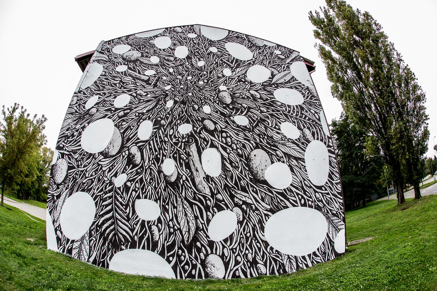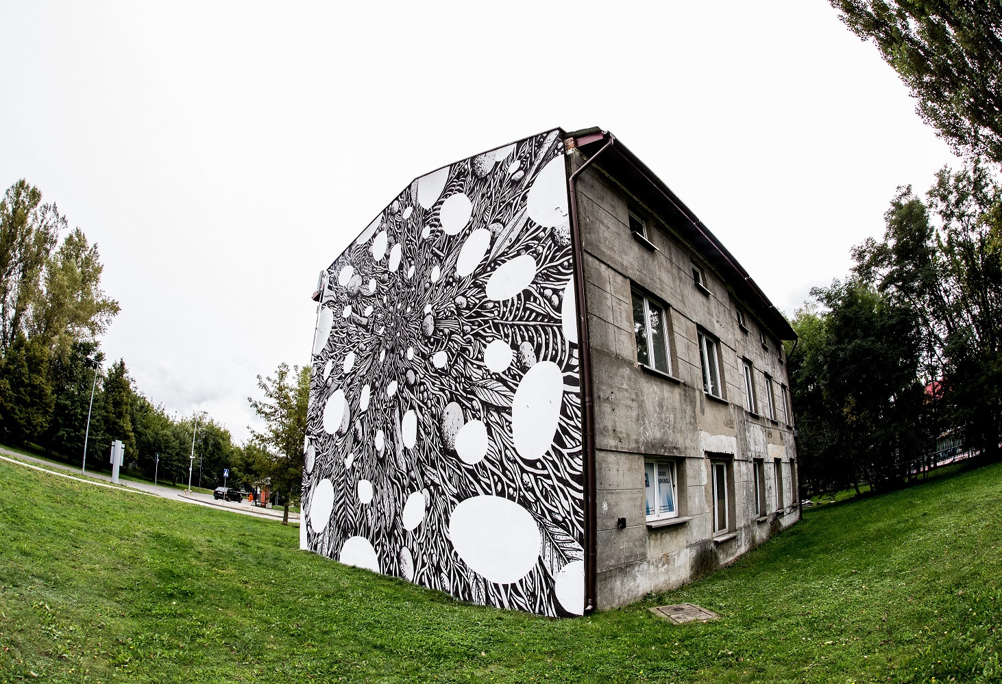 Działania przy ul. Cmentarnej 3 prowadziła Hyuro. Argentyńska artystka, tworzy w całej Europie murale w bardzo charakterystycznym stylu, pozbawione soczystych barw, za to bardzo intymne, choć wielkoformatowe.