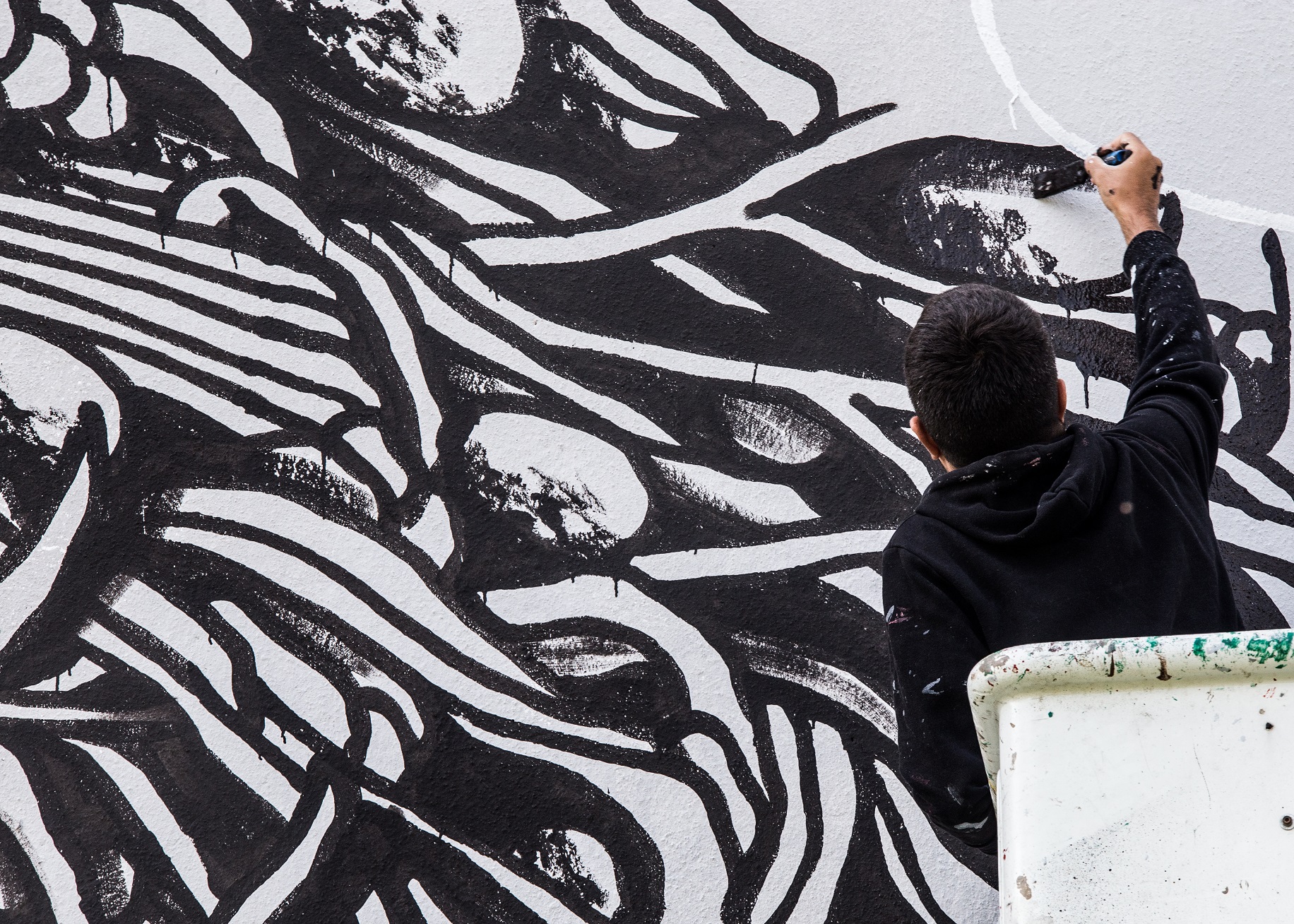 Ścianę przy ul. Wojska Polskiego 3 zmienił nie do poznania Moneyless. Jego sztuka to interesująca mieszanka tradycyjnego graffiti i sztuki wysokiej. Teo Pirisi – tworzący pod pseudonimem Moneyless, pierwsze artystyczne kroki stawiał już w wieku trzech lat, kiedy rodzice pozwolili mu pomalować ściany własnego pokoju. Podążając tą wcześnie wytyczoną ścieżką, jako nastolatek współtworzył scenę graffiti w Toskanii. Kilka lat później rozpoczął studia na Akademii Sztuk Pięknych w Carrarze, które następnie kontynuował we Florencji. Działania podejmowane w ramach odmiennych konwencji artystycznych pomogły mu rozwinąć unikalny styl.
