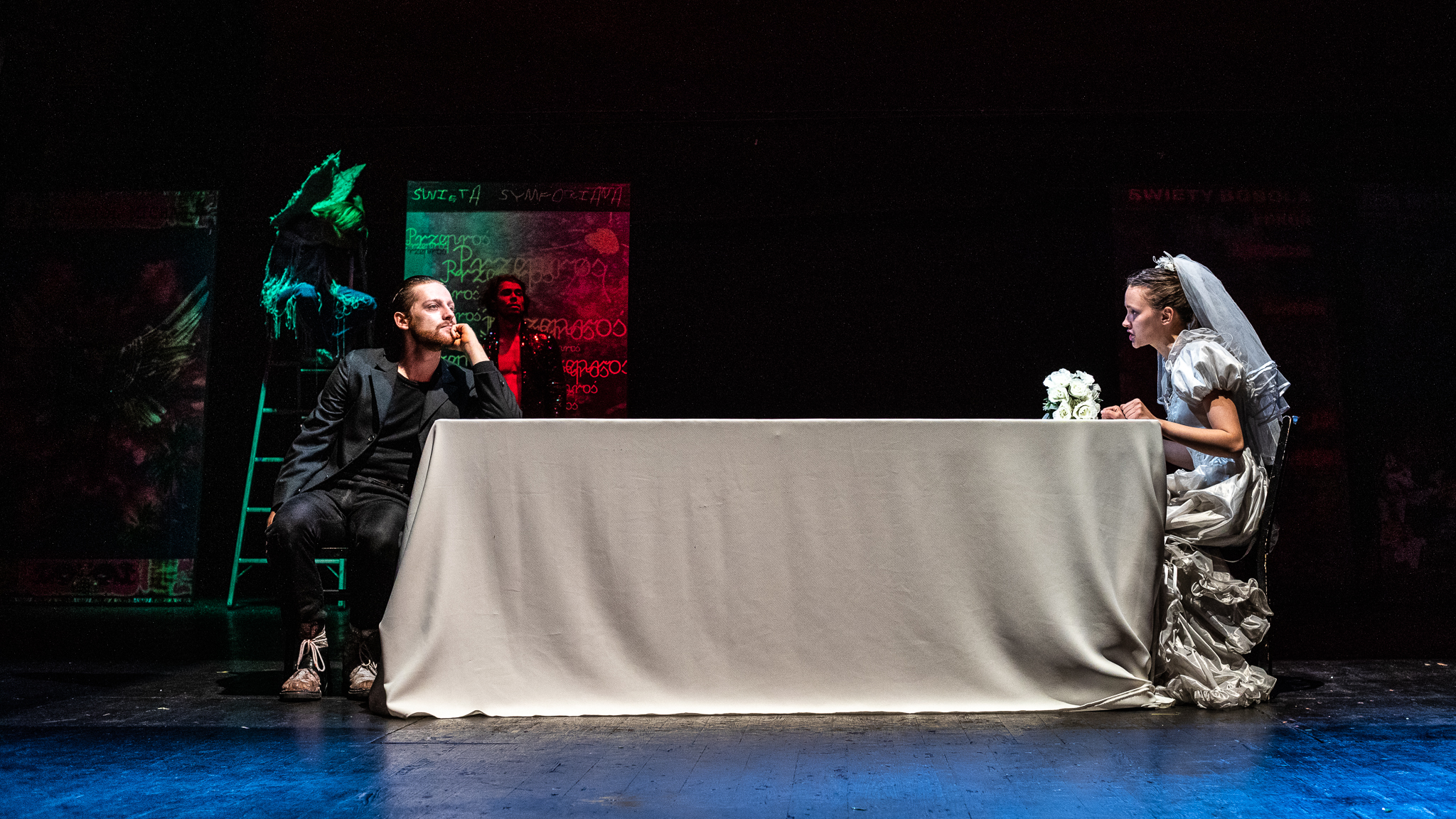 Krytycy często podkreślają, że Agata Duda-Gracz jest artystką totalną – sama pisze teksty, reżyseruje, opracowuje scenografię i kostiumy, przygotowując w pełni autorskie spektakle. Nie inaczej było tym razem – kuratorka sekcji teatralnej tegorocznej edycji festiwalu tworzyła każdy aspekt festiwalowej premiery: Ustawienia ze świętymi, czyli rozmowy obrazów Wraz ze studentami IV roku Akademii Teatralnej im. A. Zelwerowicza stworzyła dzieło przejmujące i niezwykle plastyczne.